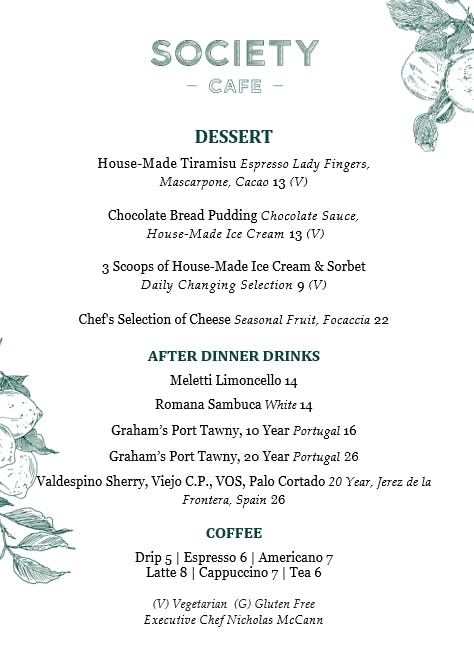 *Only available in Society Cafe, not available for In-Room Dining