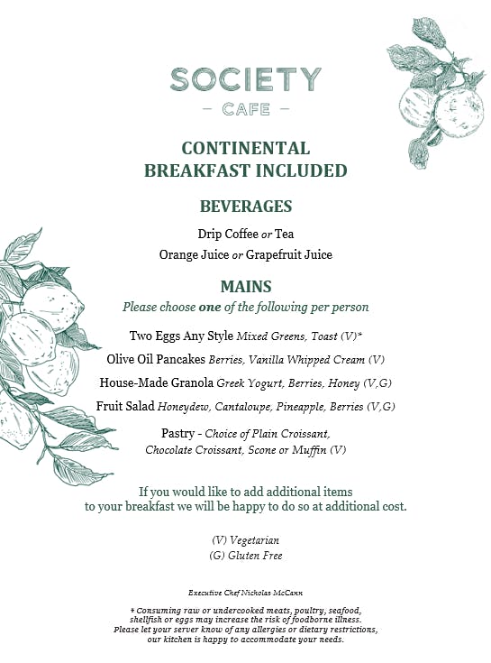 Only available for our Walker Hotel Greenwich Village guests who have opted to include breakfast with their hotel reservation