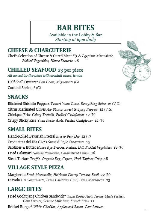 Consuming raw or undercooked meats, poultry, seafood, shellfish or eggs may increase the risk of foodborne illness. Feel free to let your server know of any dietary restrictions. Our kitchen is happy to accommodate your needs.